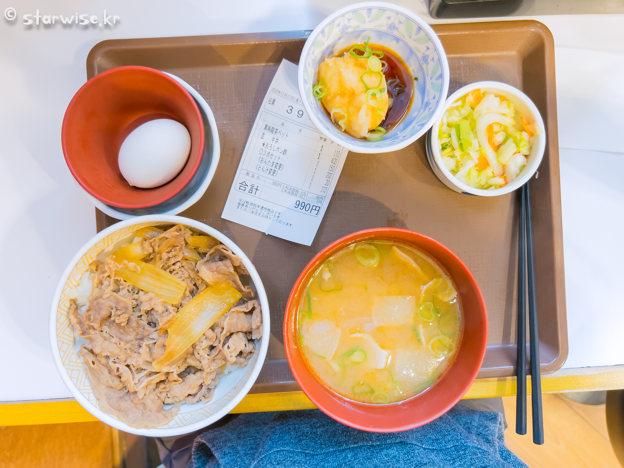 정말, 이 덮밥때문에 일본에 살고 싶은 생각이 들 정도로 입에 정말 잘 맞는다. 그리고 요즘은 현대화되어 있는 키오스크가 있는 경우가 많아서 대부분의 경우에는 자판기에 "한글"메뉴가 있기 때문에 어렵지 않게 주문할 수 있다. 메뉴 하나하나가 빼먹을 데가 없다. 돈부리의 간은 적당하고, 된장국도 너무 맛있으며 반찬들도 하나같이 독특한 맛이다. 재미있는 점은, 덮밥집 대부분을 가보면 고령자분들이 많아서 더욱 정겹게 느껴지기도 한다.