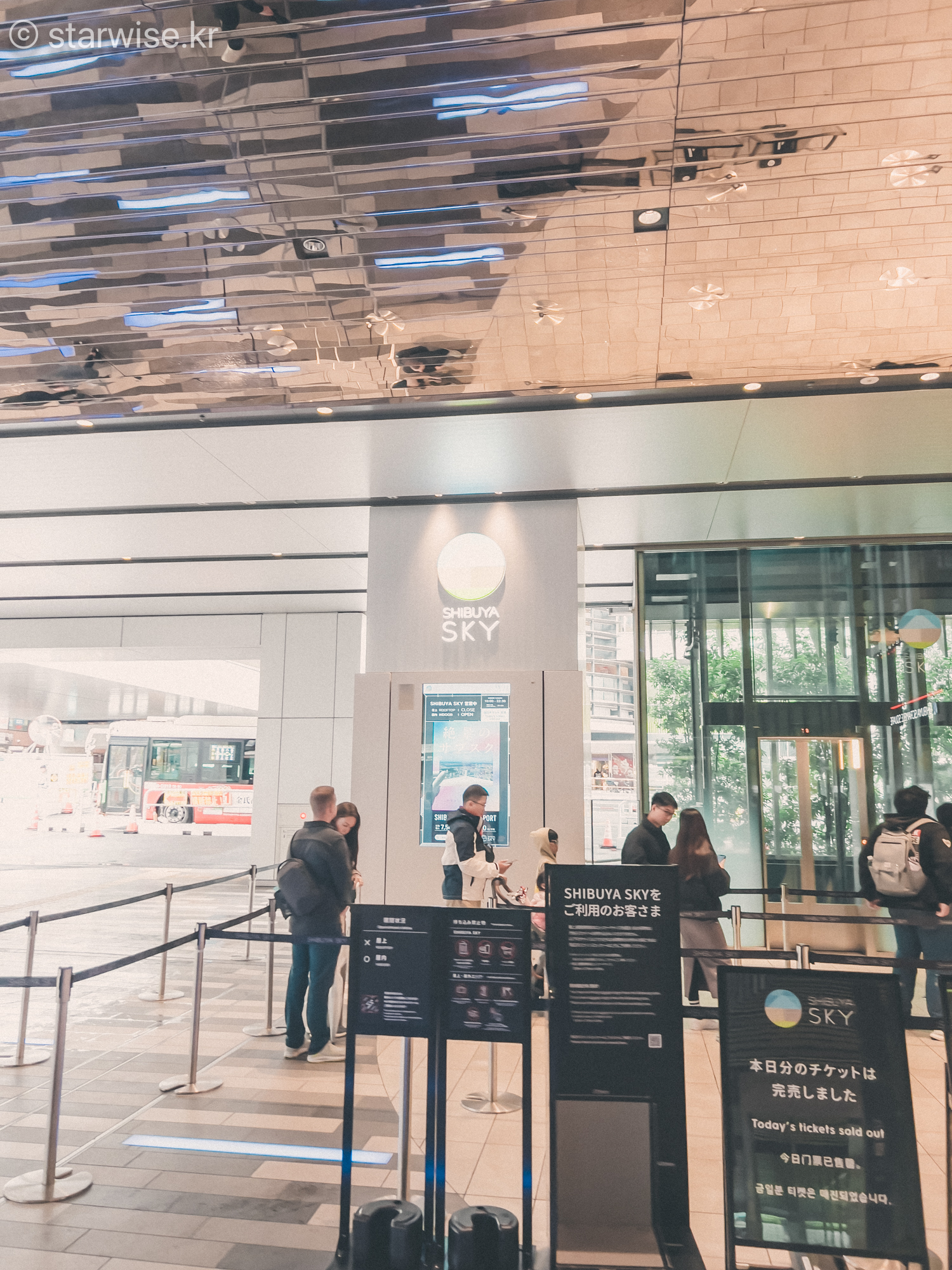 일단, 입구 찾기부터가 매우 힘들다. 대형 종합쇼핑몰의 꼭대기 층이기 때문에 입구 찾기가 정말 어렵다. 그렇기에 반드시 시간여유를 두고 입구를 찾아야 한다. 필자도 그냥 구글지도에 "시부야스카이"검색하고 내비게이션을 찍었다가 스크램블 교차로 한가운데에서 헤매느라고 예약시간에 늦을 뻔했다. 구글 지도에는 시부야스카이로 검색하기보다는 시부야 스크램블 스퀘어를 검색해서 이동하는 것을 추천한다.