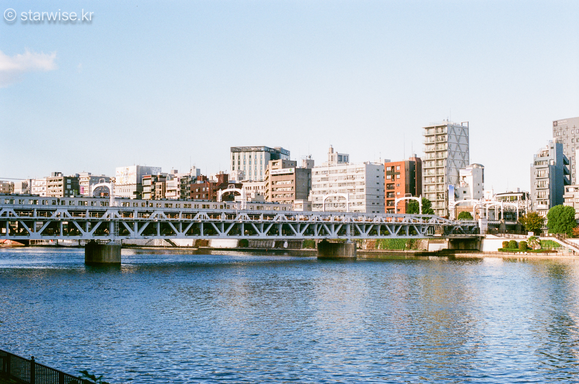 이제야, 도쿄라는 도시는 눈을 뜨고 양치질을 시작한 것 같았다. 강가를 따라 산책로에는 몇몇 도쿄 시민들이 운동복을 입고 조깅을 하는 젊은이들, 혹은 천천히 햇살을 느끼며 걷고 있는 나이 든 어르신들을 볼 수 있었다. 그리고 너무나도 낭만적이게 그 위의 철로에는 아직 잠에서 깨지 않은 직장인들을 싣고 있을 것만 같은 전철이 철컹철컹 소리를 내며 지나가고 있었다.
