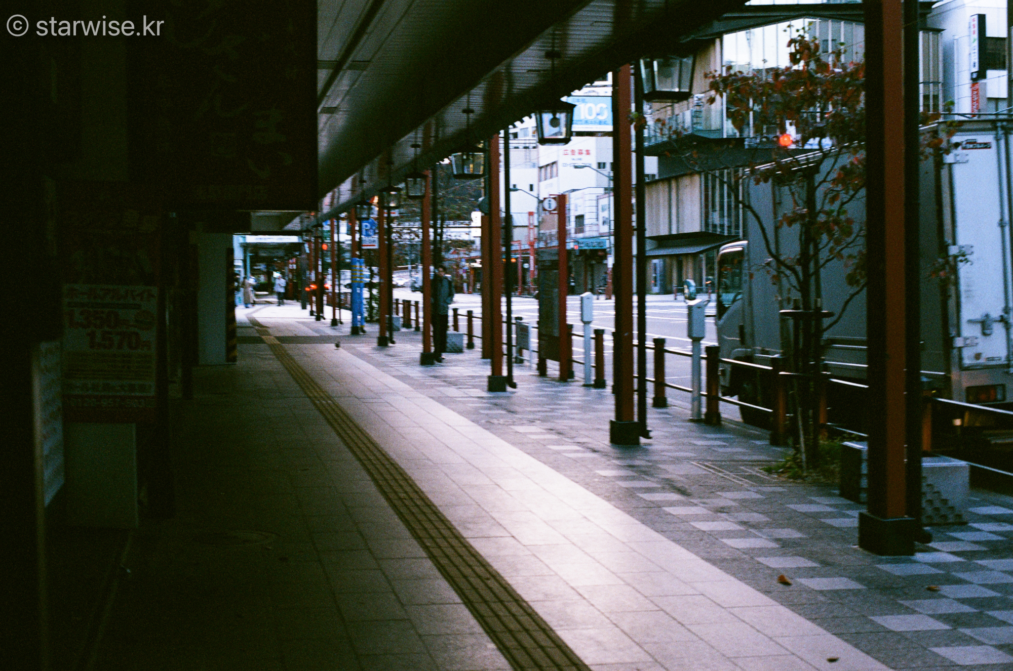 도쿄 시내를 비추는 빛이 점점 화려해지고, 밝아질 때 아사쿠사로 돌아오는 풍경은 더욱 빛이 바랜 모습을 담아보고 싶었다. 그래서 디지털카메라를 내려놓고, 조금은 빛바랜 색감을 주는 필름 카메라로 돌아오는 도쿄의 아침을 담아보았다.