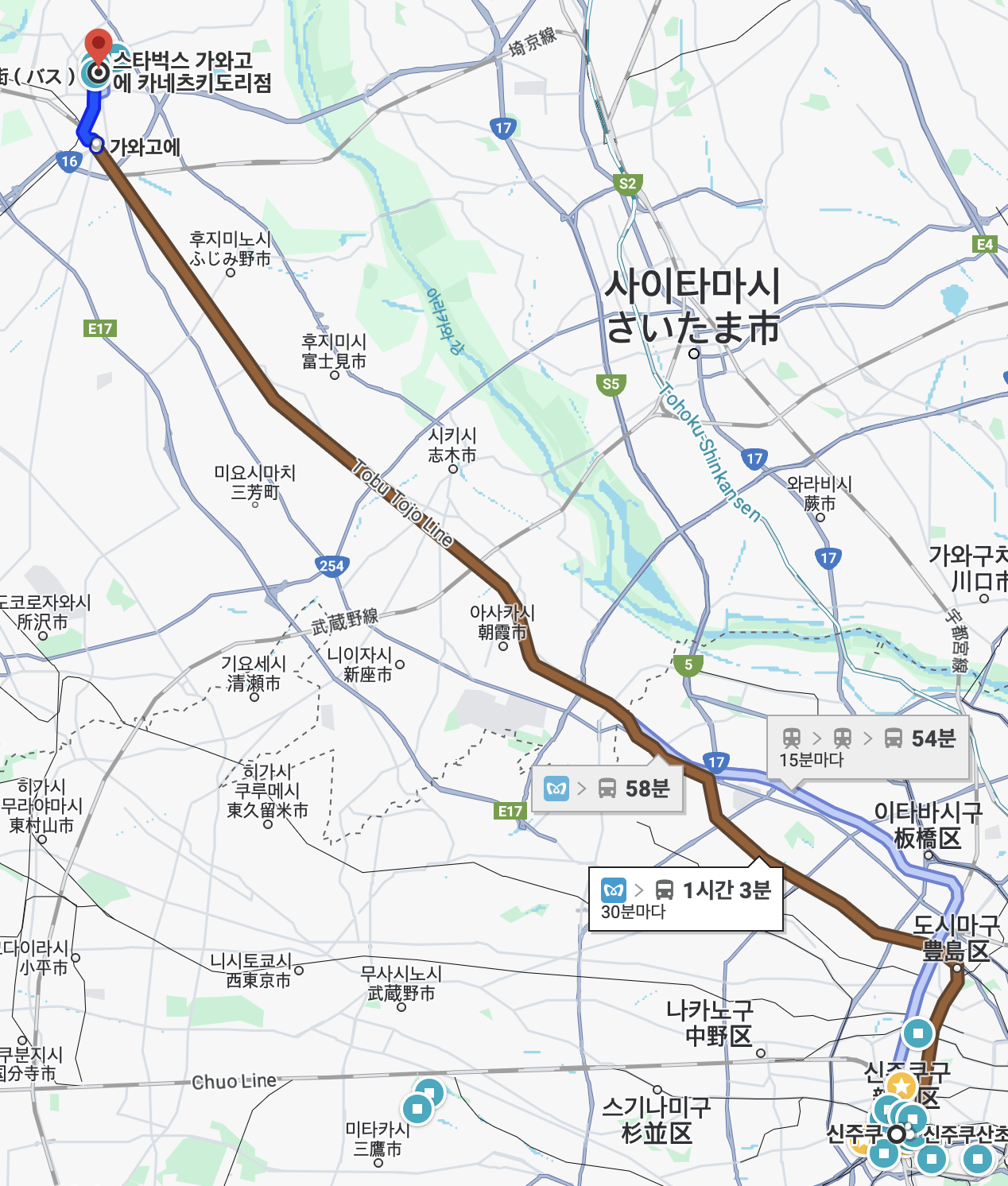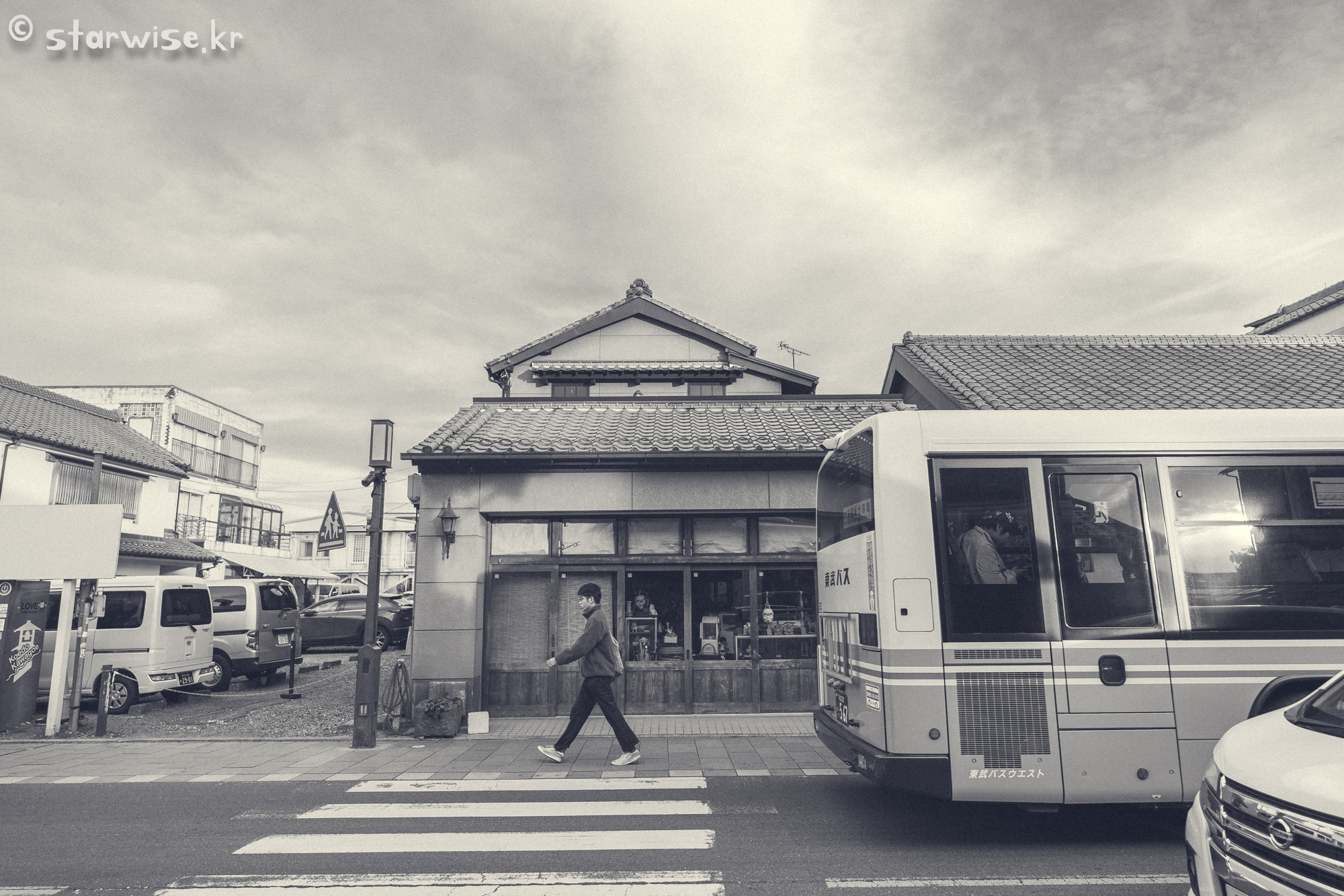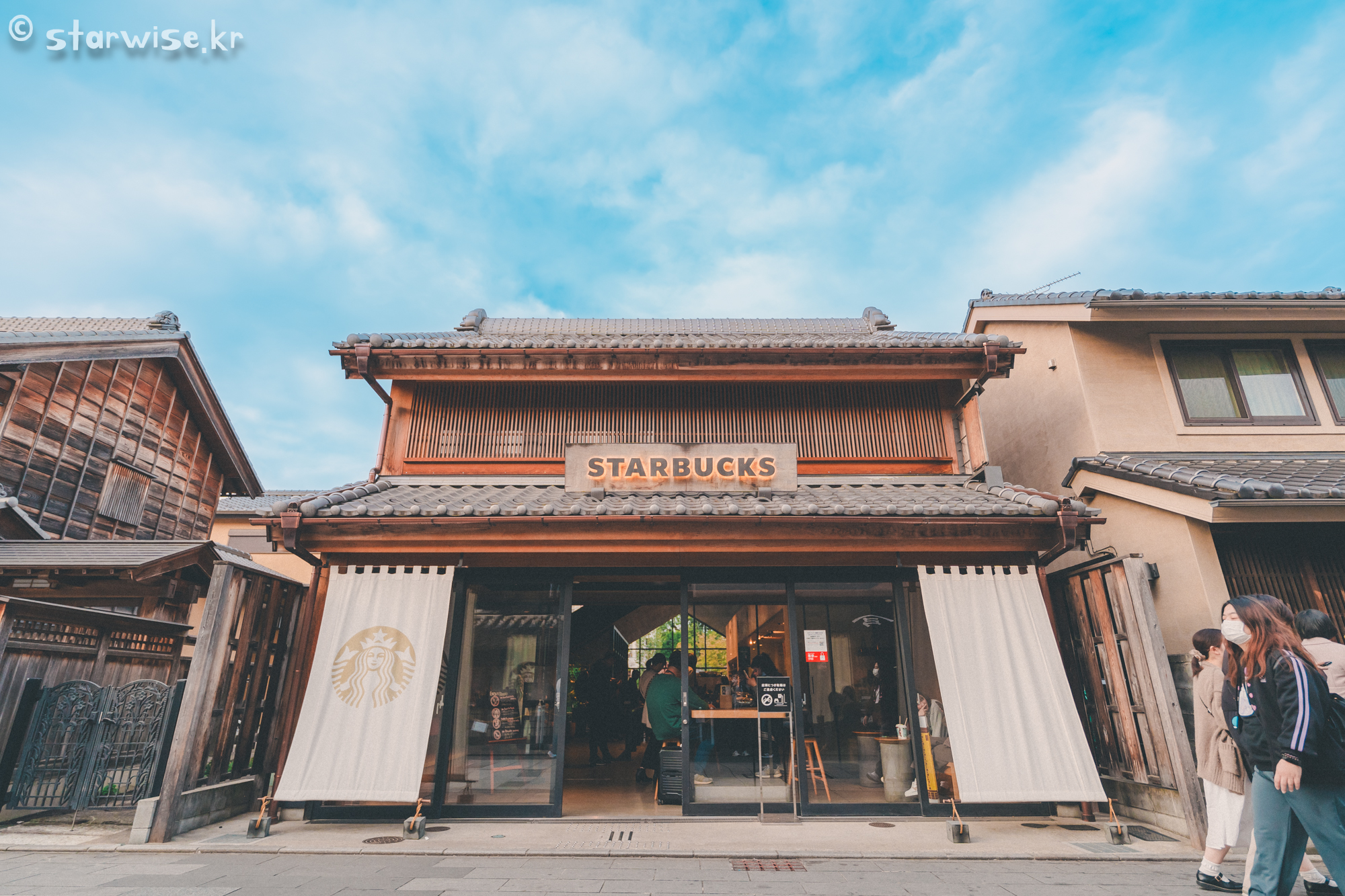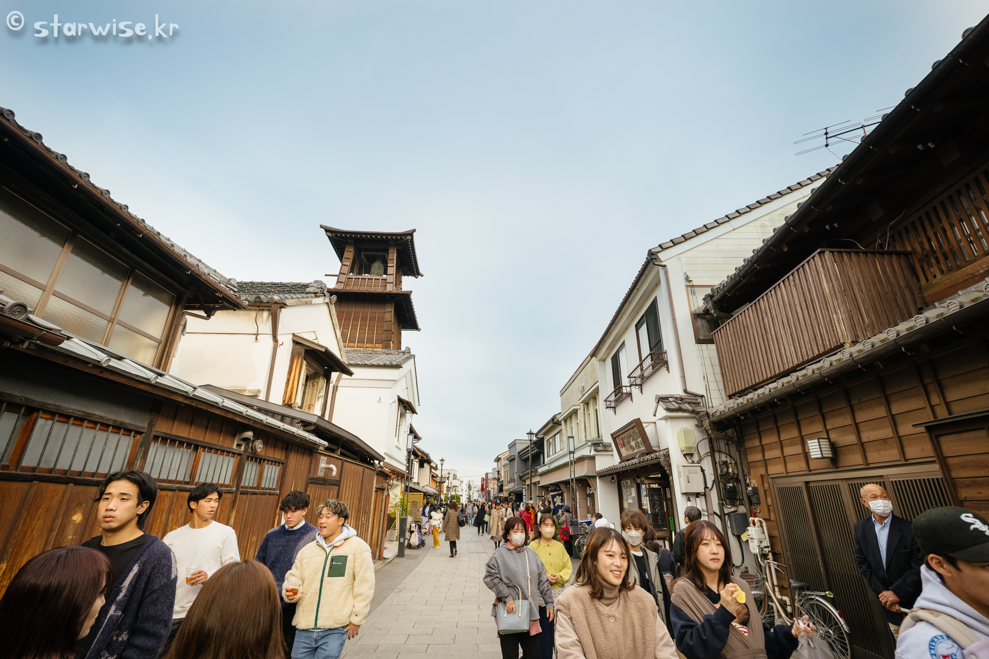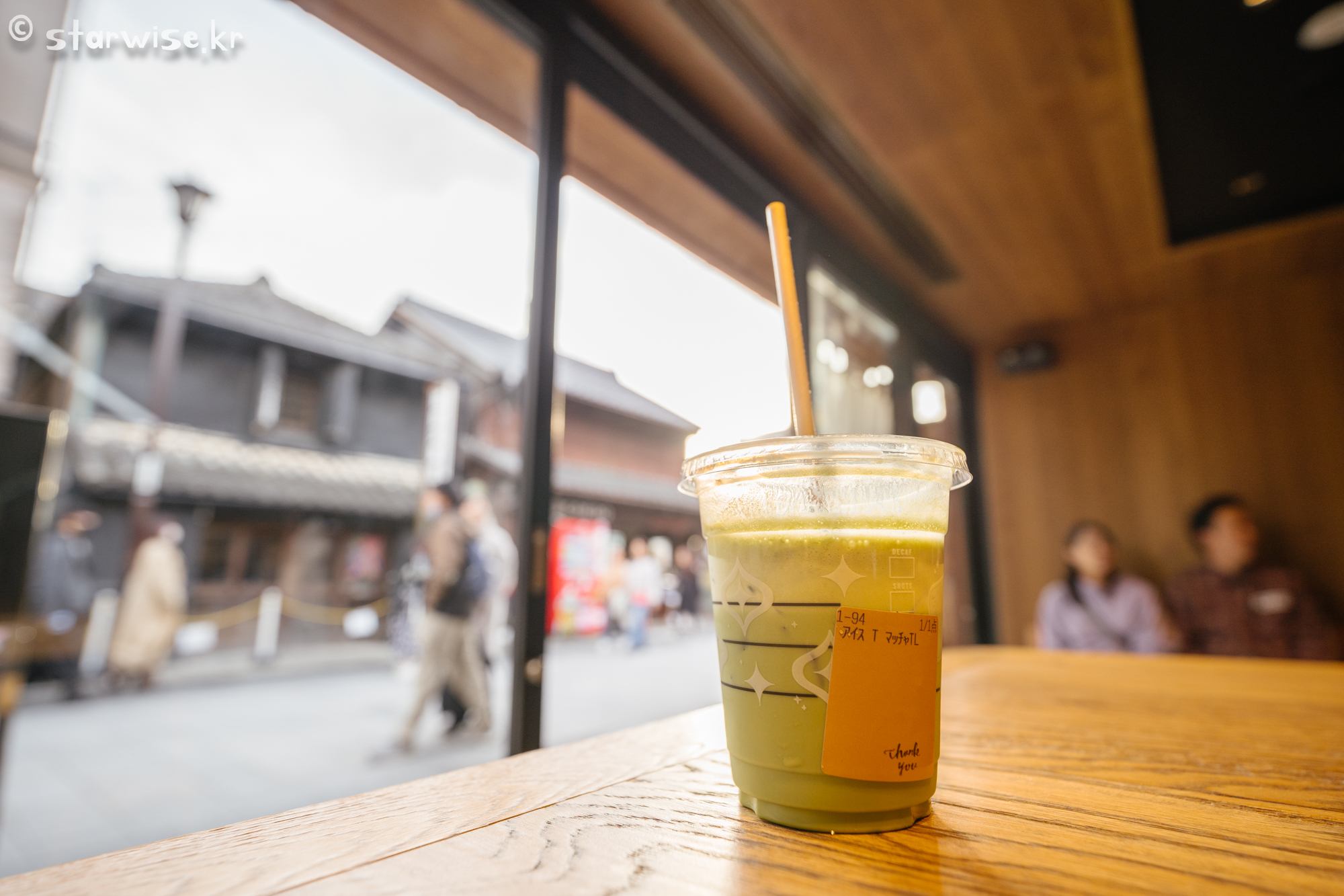 버스는 다음 목적지이자, 마지막 여정을 향해 달린다. 일정표 상에는 단순히 '코에도'라고 표시되어 있었던 카와고에(川越) 거리였다. 마치, 전주의 한옥마을처럼 일정한 구역 안에 예전 일본의 목조건물들, 에도시대에 돌아온 것 같은 느낌이 들게 만드는 상점가들과 음식점들이 길게 늘어서 있는 공간이다. 카와고에 거리 중앙에 위치한 시계탑(時の鐘, 토리노카네)이 랜드마크인 이곳은 관광객보다 일본인들이 더 많이 보이는 공간이었다. 그래서 더더욱 특별했던 것 같은데, 나는 제일 먼저 달려간 곳이 시계탑 바로 옆에 위치한 '스타벅스' 인기 관광지인 만큼 비어있는 자리를 찾기 힘들 것으로 생각되었기 때문에 제일 먼저 방문한 곳이다. 그리고 아주 운이 좋게 바깥 거리의 사람들을 구경할 수 있는 테이블 석에 자리를 잡을 수 있었다.