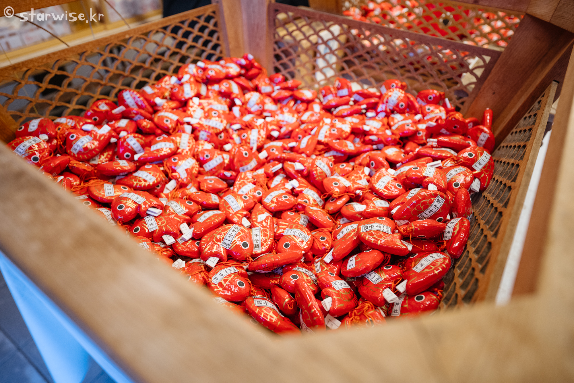 터널 자체로 방문할 가치는 충분히 있지만 그렇다고 신사 안이 전혀 볼 것이 없는 것은 아니다. 나름 오락거리로 연애운을 뽑을 수 있는 붕어 잡기 뽑기도 있고, 올해 운세를 뽑을 수 있는 뽑기도 볼 수 있다. 재미있던 점은 분명 일본 현지인들만 보이는 신사였는데 뽑기는 한글버전도 있었다는 점이다..!! 신사 내부는 넓진 않지만 천천히 걸으면서 실제 소원을 빌고 있는 주민들을 보고 있으면 마음이 왠지 모르게 편해지는 곳이다.