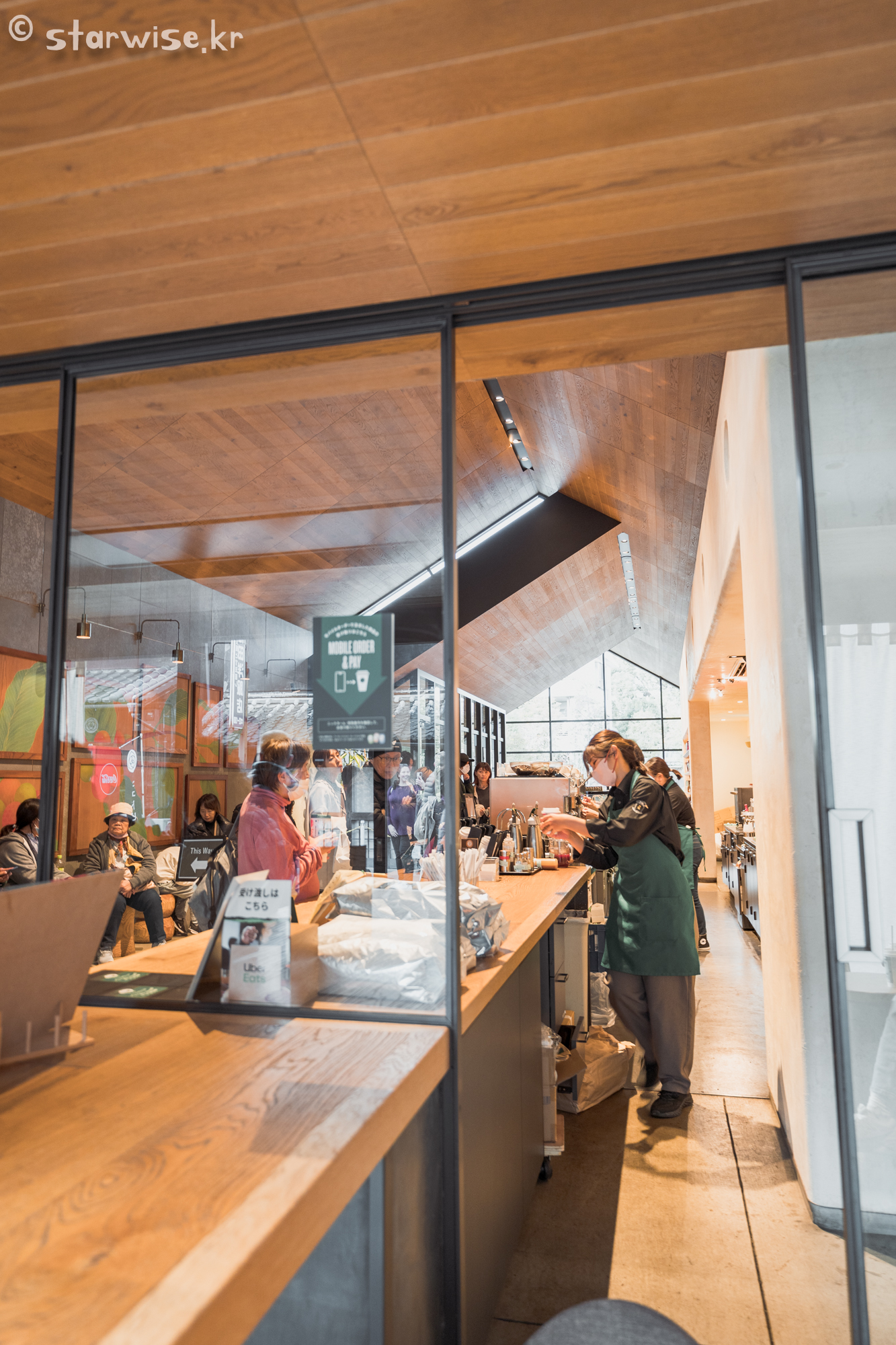 스타벅스 외관도 에도시대 건물의 모습이었다. 전통식이라기보다는 나름 현대적으로 재해석한 느낌? 인기 관광명소 답게 이미 많은 사람들 사이로 좋은 자리를 노리고 있다가 바로! 착석. 여유를 느낄 수 있는 시간, 그리고 이 주변에 할만한 것 볼만한 것이 무엇이 있는가 검색을 해보니 나름 볼만한 가게는 '지브리 스튜디오' 기념품샵이었다.