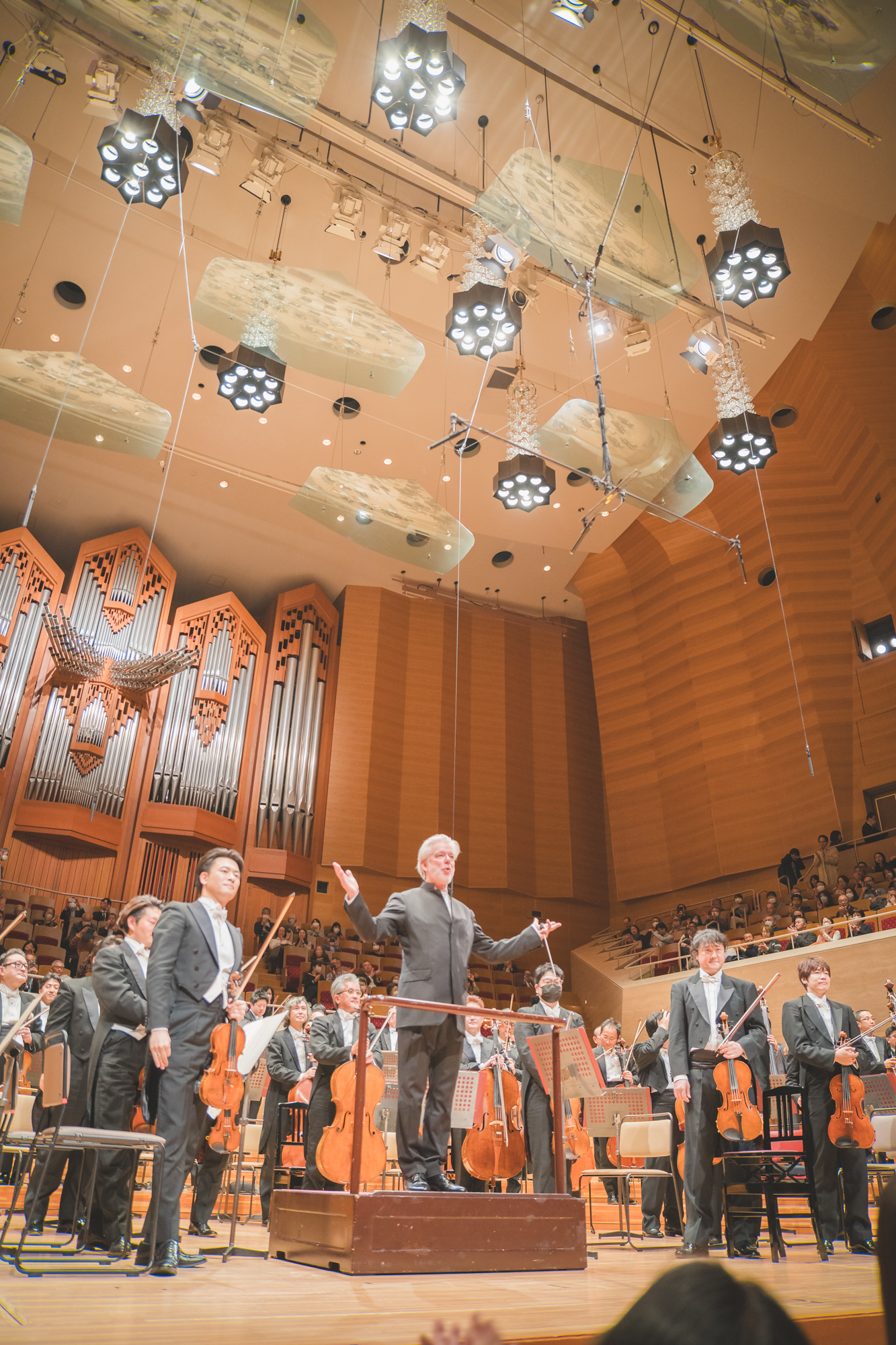 NHK필하모닉의 연주는 환상적이었다. 내가 입장했을 때는 핀란드 바이올리니스트가 협연하는 협주곡이었는데 특이했던 점은 요즘 시대에 맞게 "직접 손으로" 악보를 넘기지 않고 '태블릿으로 악보를 보며, 악보를 넘겨야 할 때는 발 밑에 있는 페달을 살짝 밟아준다는 점'이었다. 운이 아주 좋게도 2열 좌석에 앉아서 공연을 보니 신기하게도 바이올린의 소리가 울려서 들리는 게 아니라 현이 튕기는 소리를 직접 직선으로 귀에 꽂히는 느낌이었다! 마이크나, 공연장의 울림에 의한 바이올린 소리가 아닌  진짜 연주소리였다. 연주자와 거리가 5미터도 안되었기 때문에 바이올린 활대의 줄이 몇 개 끊어지며 이리저리 휘날리는 장면도 볼 수 있었다...!!