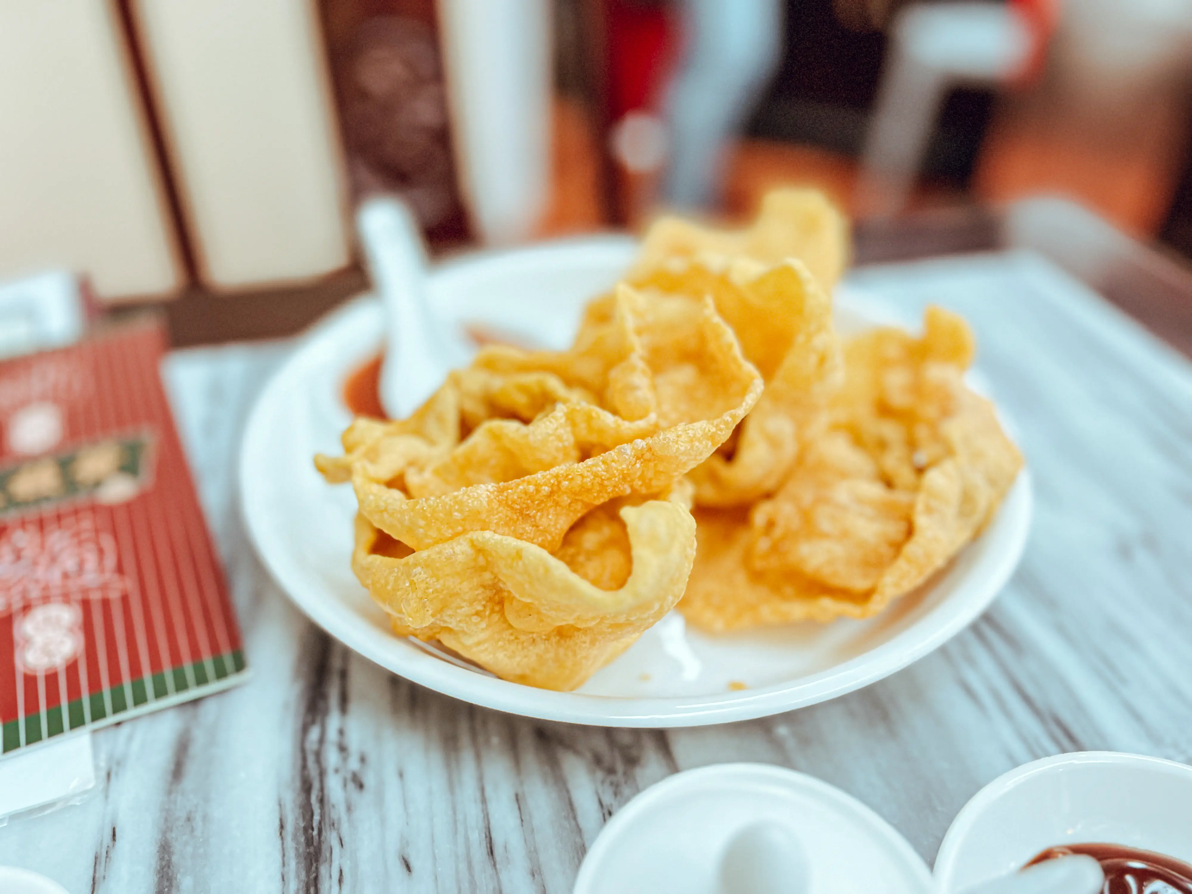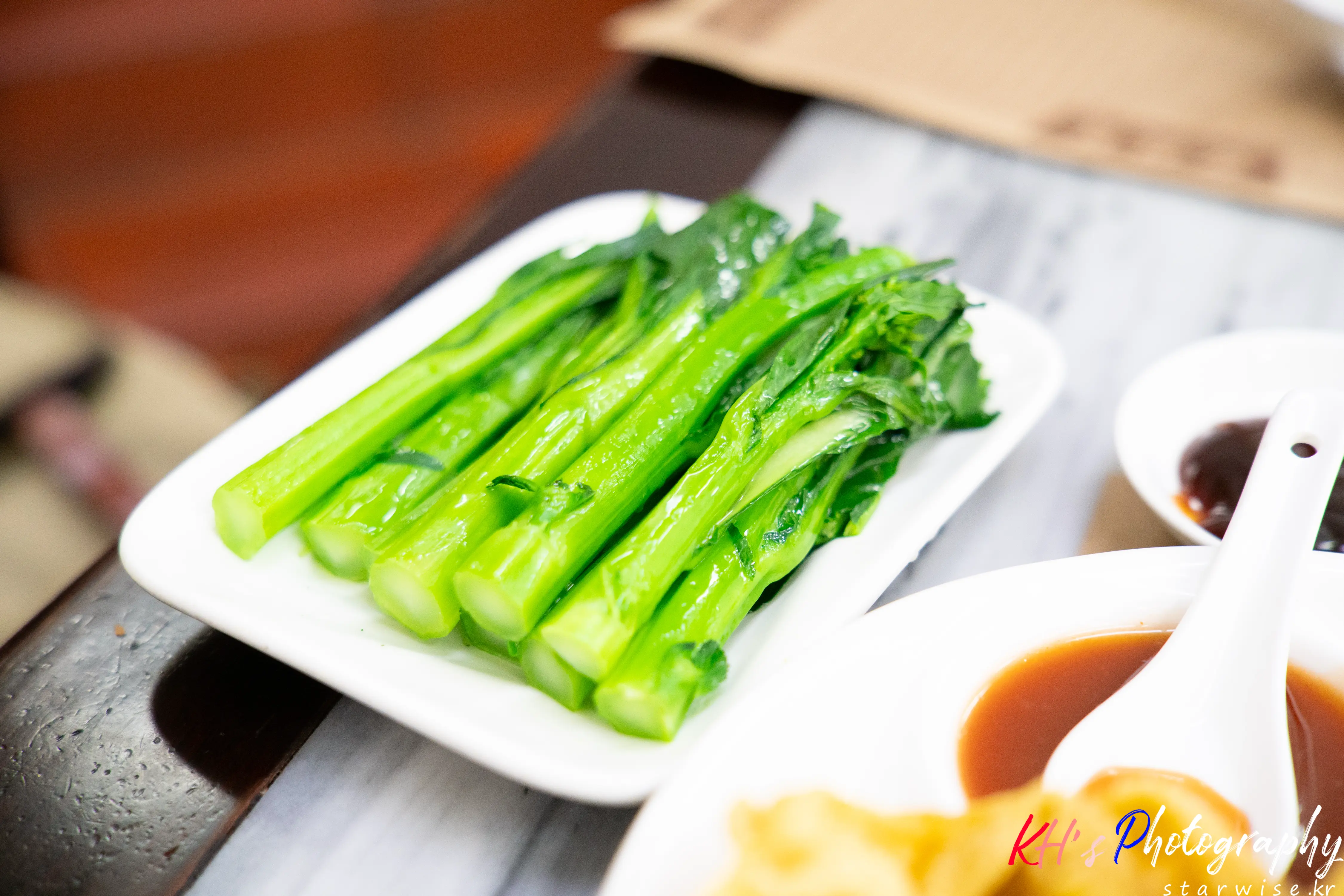 주문한 요리가 모두 튀김 / 찜요리라서 영양적 밸런스(?)를 위해 주문한 채소요리.. 모닝글로리(공심채)를 한번 데쳐서 살짝 기름에 둘러서 나온 맛이다. 그래도 야채 특유의 아삭한 식감은 있어서 먹을만했다. 튀김의 느끼함도 좀 잡아주고 새우완탕의 심심한 맛을 보완해 주는 채소이다. 6점!