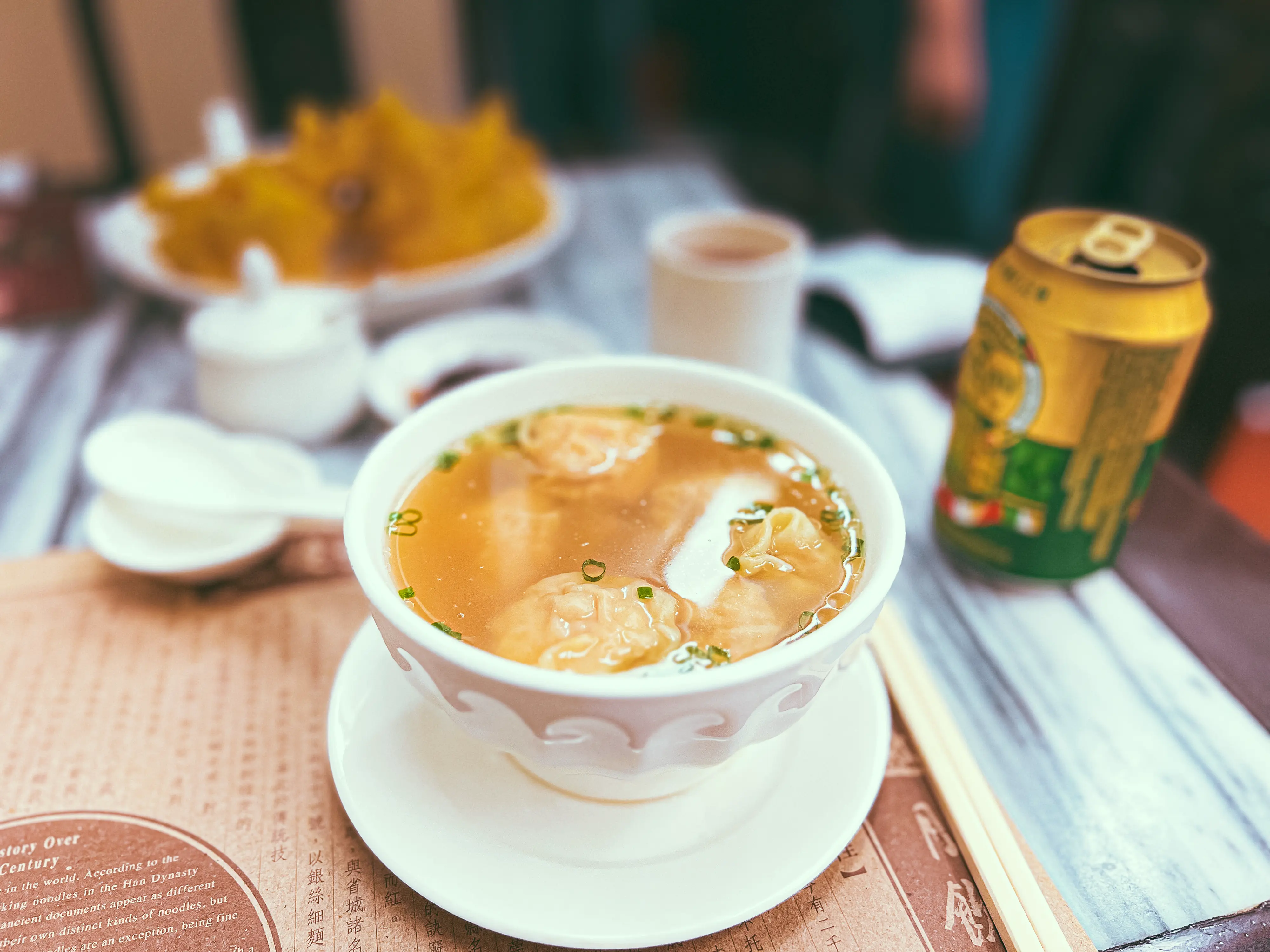 메뉴가 생각보다 많이 있었기 때문에 무엇을 먹어야 할까 고민을 많이 했었던 것 같다. 일단은 제일 유명한 새우 완탕... 면으로 먹을까 국물요리로 먹을까 고민을 좀 하긴 했지만 면은 호불호가 갈린다는 얘기를 많이 들었기에 그냥 탕으로 주문. 그리고 바삭한 식감을 좋아하는 필자이기에 새우완탕 튀김도 하나 주문하고 아삭한 식감을 위해 굴소스+야채볶음 요리를 주문했다. 물론, 마카오 맥주와 함께 말이다!(여행의 묘미는 대낮부터 음주하는 것이라 생각한다..ㅎㅎ)