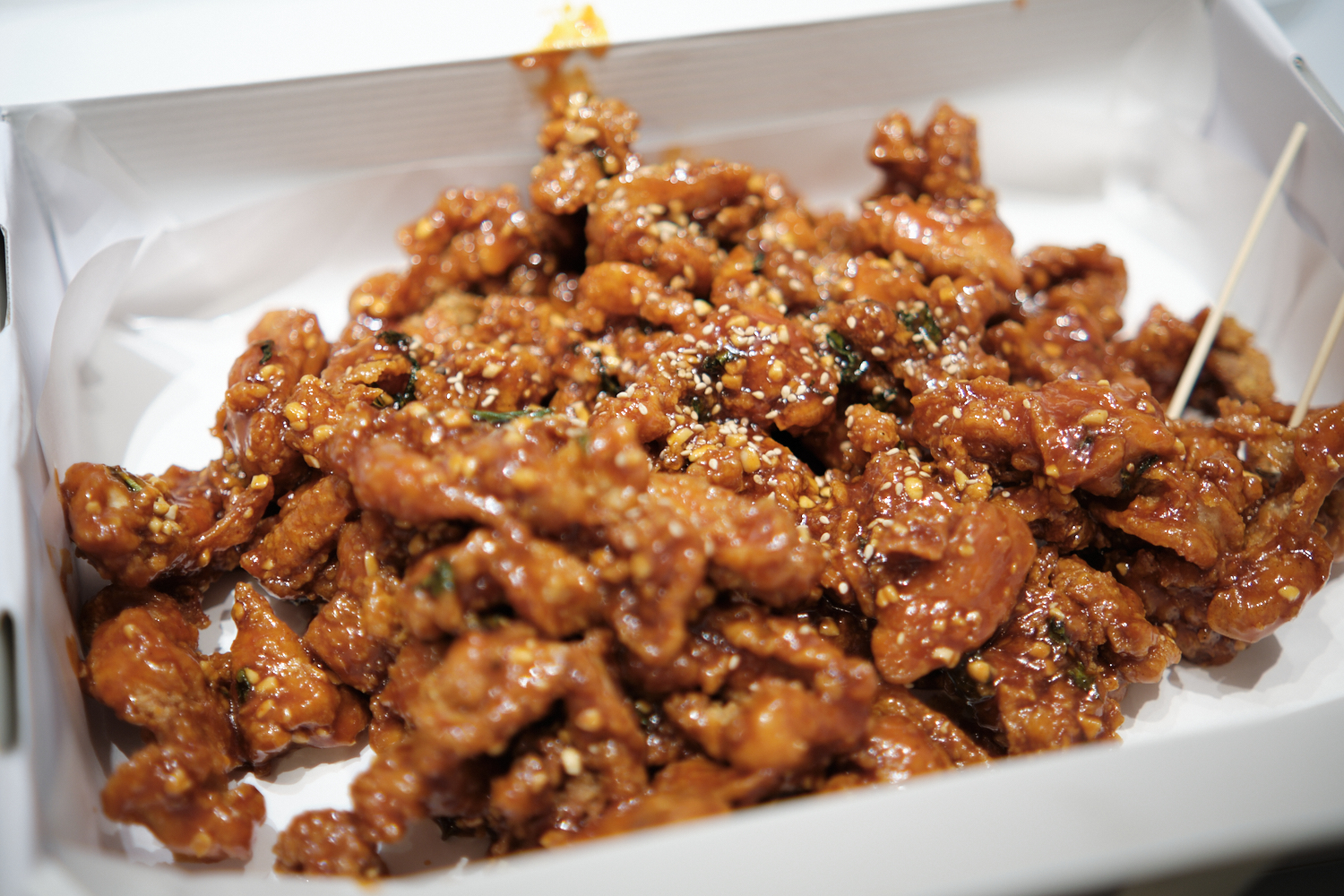 못 먹을 뻔했다. 한 번 먹어보니, 처음에는 닭강정 특유의 달달함이...그리고 곧이어