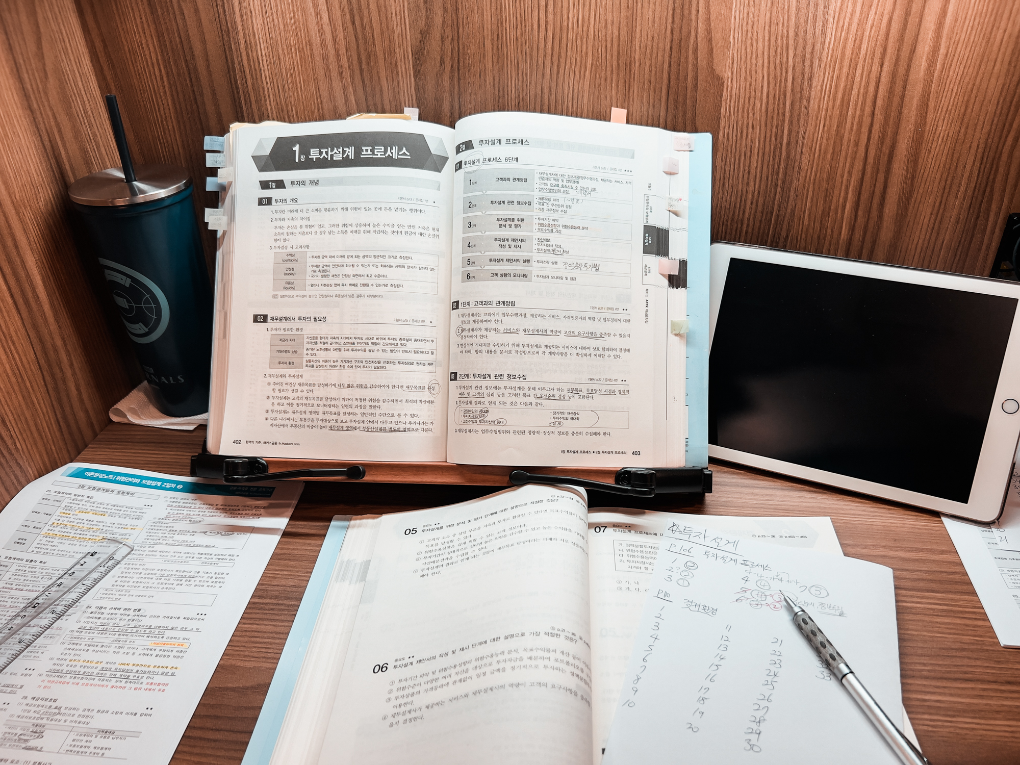그렇지만 시험을 2주 남겨두고는 드디어 X줄이 타기 시작했다. 초조해지기 시작... 사실, 투자파트는 투운사 본 경험만 믿고 (내용도 가물가물하면서) 인강 패스하고 요약집만 파고들었다. 2주 전부터는 하루에 1과목씩 무조건 요약집 완독 + 해당 과목 모의고사 풀기로 반복반복했다. 그러면 이제 패턴이 보인다. 무슨패턴? 내가 무엇을 아직 완벽히 외우지 못했고 어떤 문제가 계속 틀리는지 말이다. 원래대로라면 오답노트 만들어서 달달달 외워야했지만 그렇게 하진 못했다. 다만, H사에서 나온 요약집 책을 무한 반복하면서 동시에 학습자료로 제공 된 핵심요약 정리노트를 계속해서 반복했다. 그래도 법률 특히 세금 파트는 너무나도 어려웠다. 평소에 1시간도 책을 안보던 나였지만 시험을 일주일 정도 남겨두고는 퇴근하면 바로 스터디카페로 가서 4~5시간은 공부하고 쉬는 날엔 점심먹고 바로 공부 시작했다. 오랬만에 무언가를 배운다는 즐거움도 느껴지는 순간이었다. (물론!! 세금파트 진짜 욕나온다...!! 법률 공부하시는 분들 정말 존경합니다...)